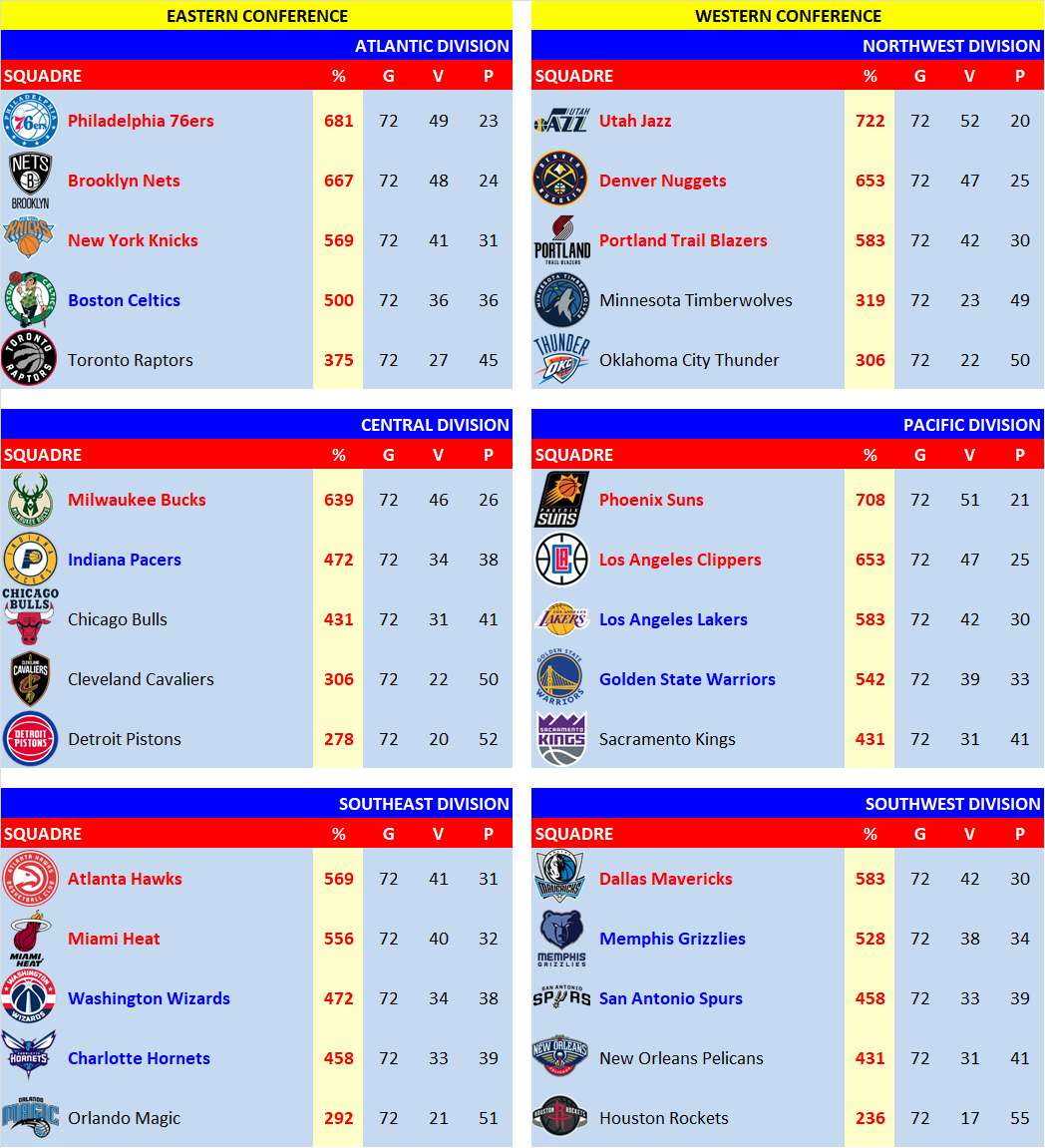 Resta aggiornato con le classifiche di nba.